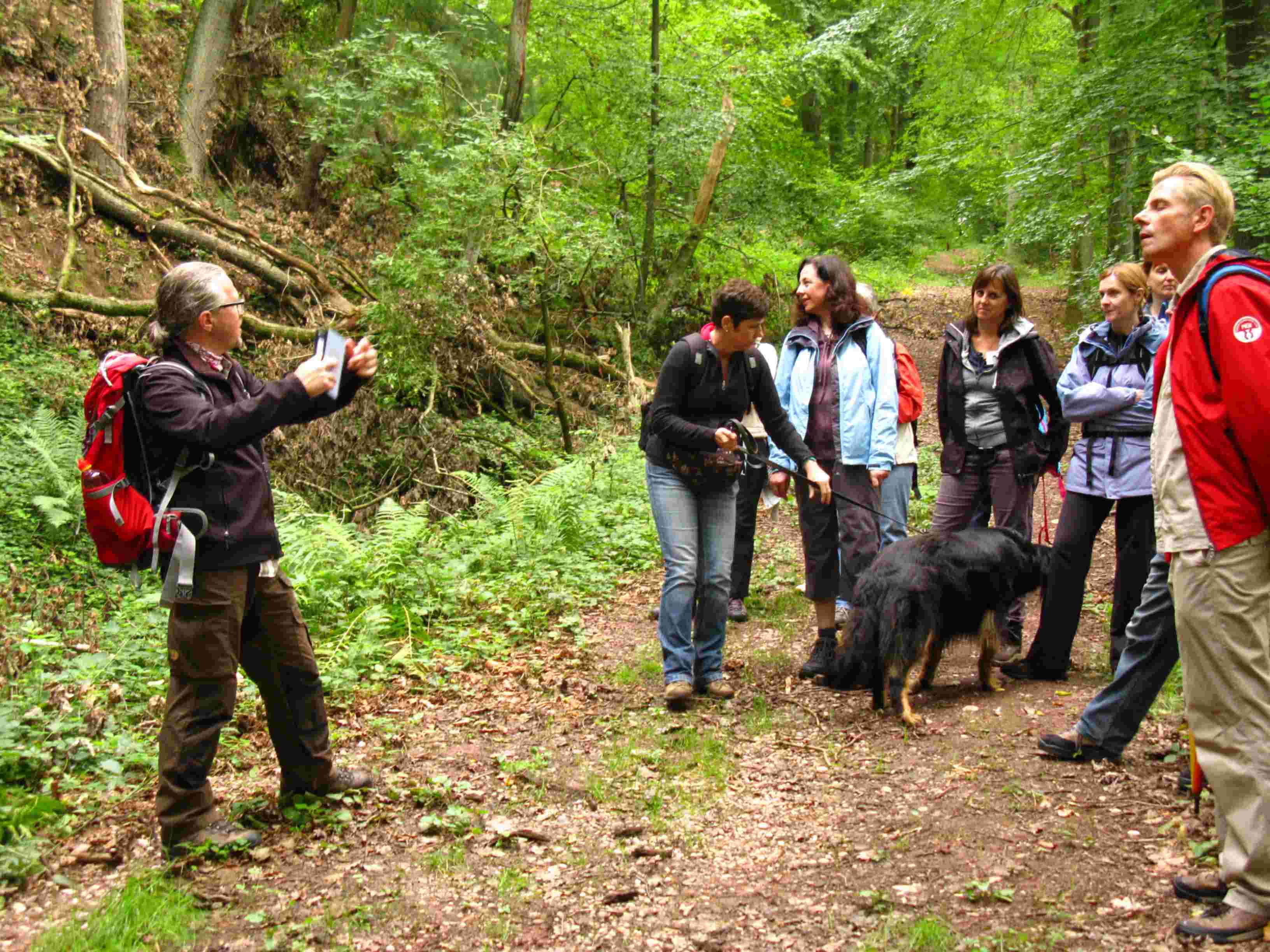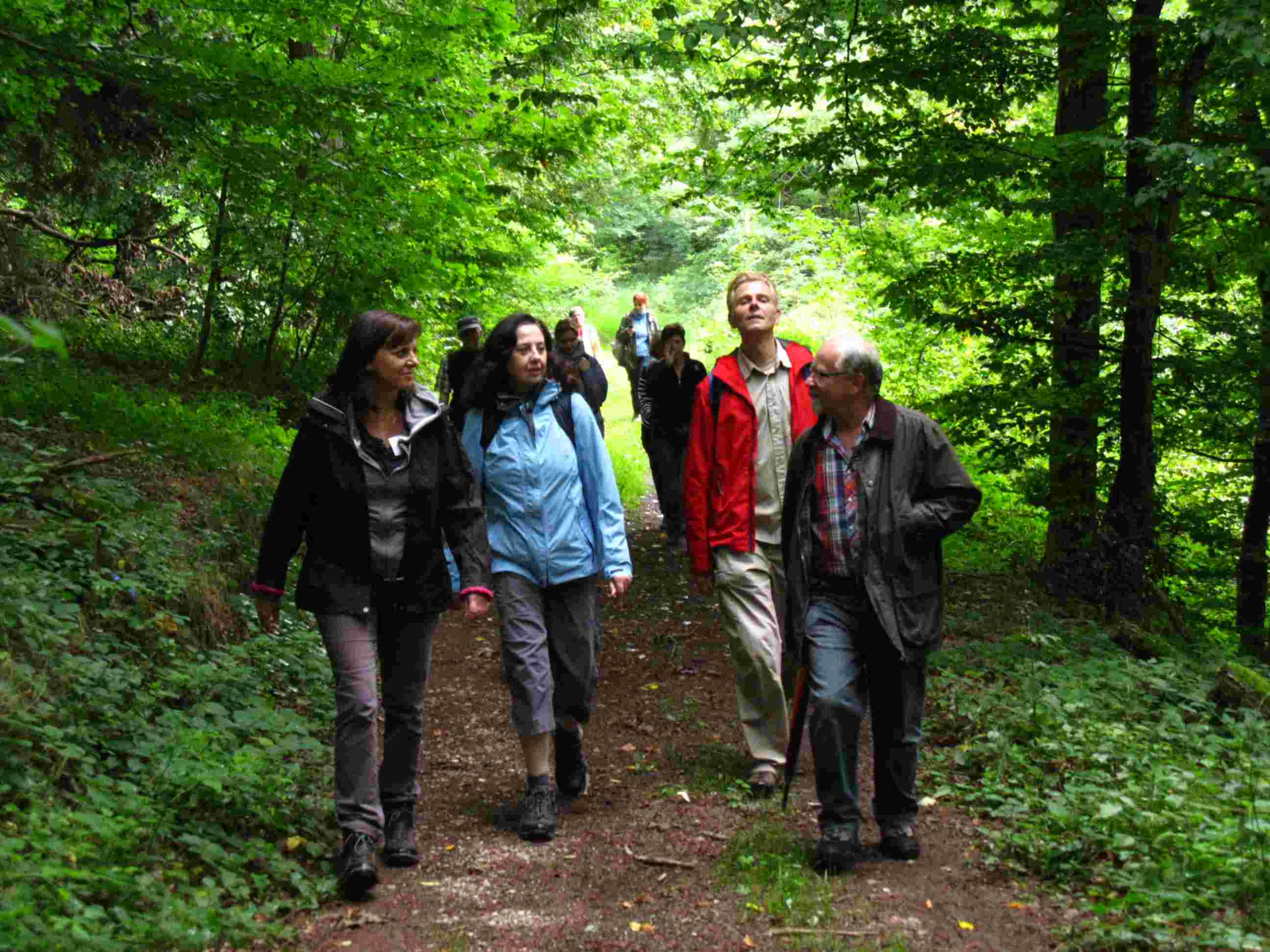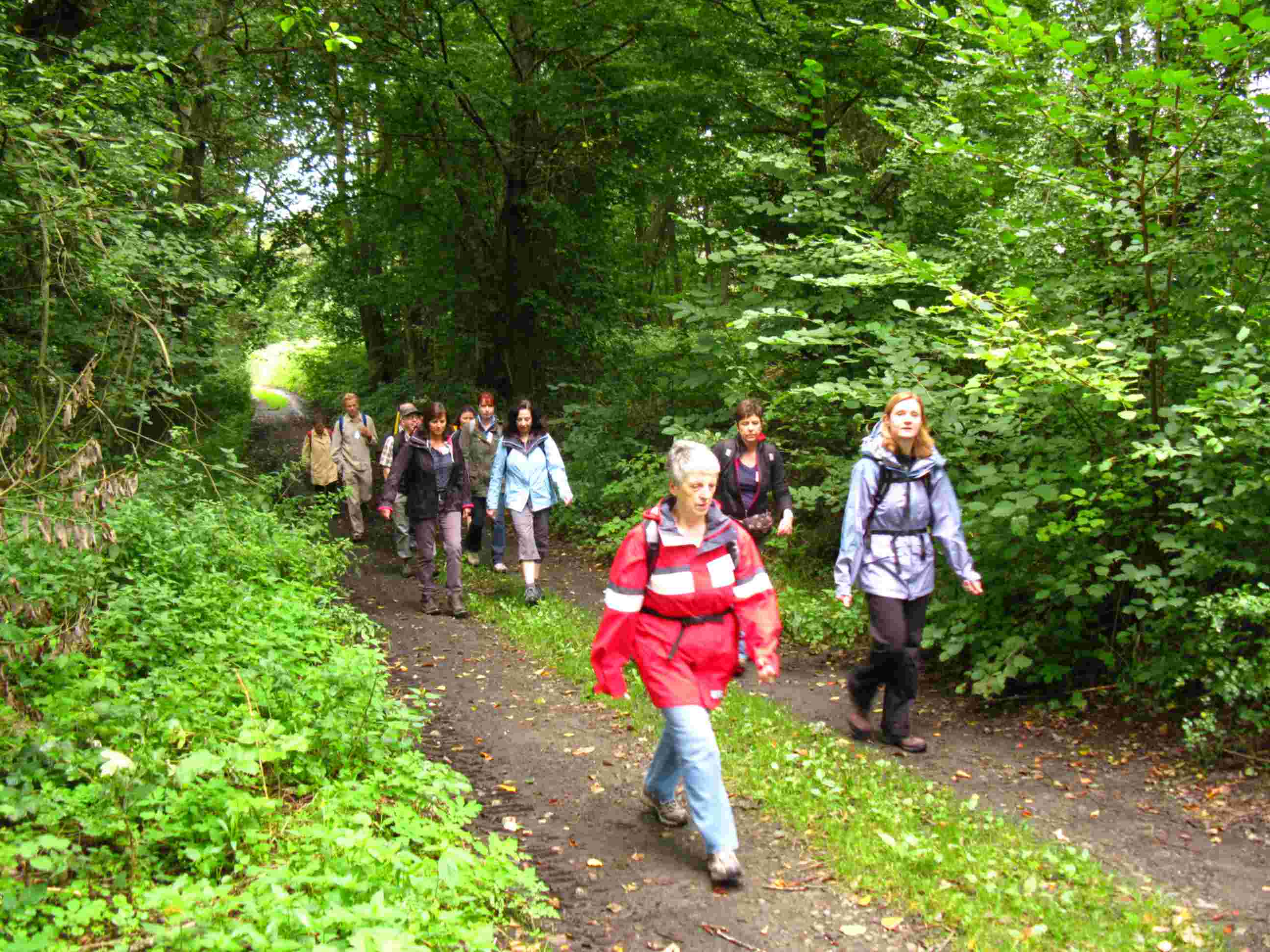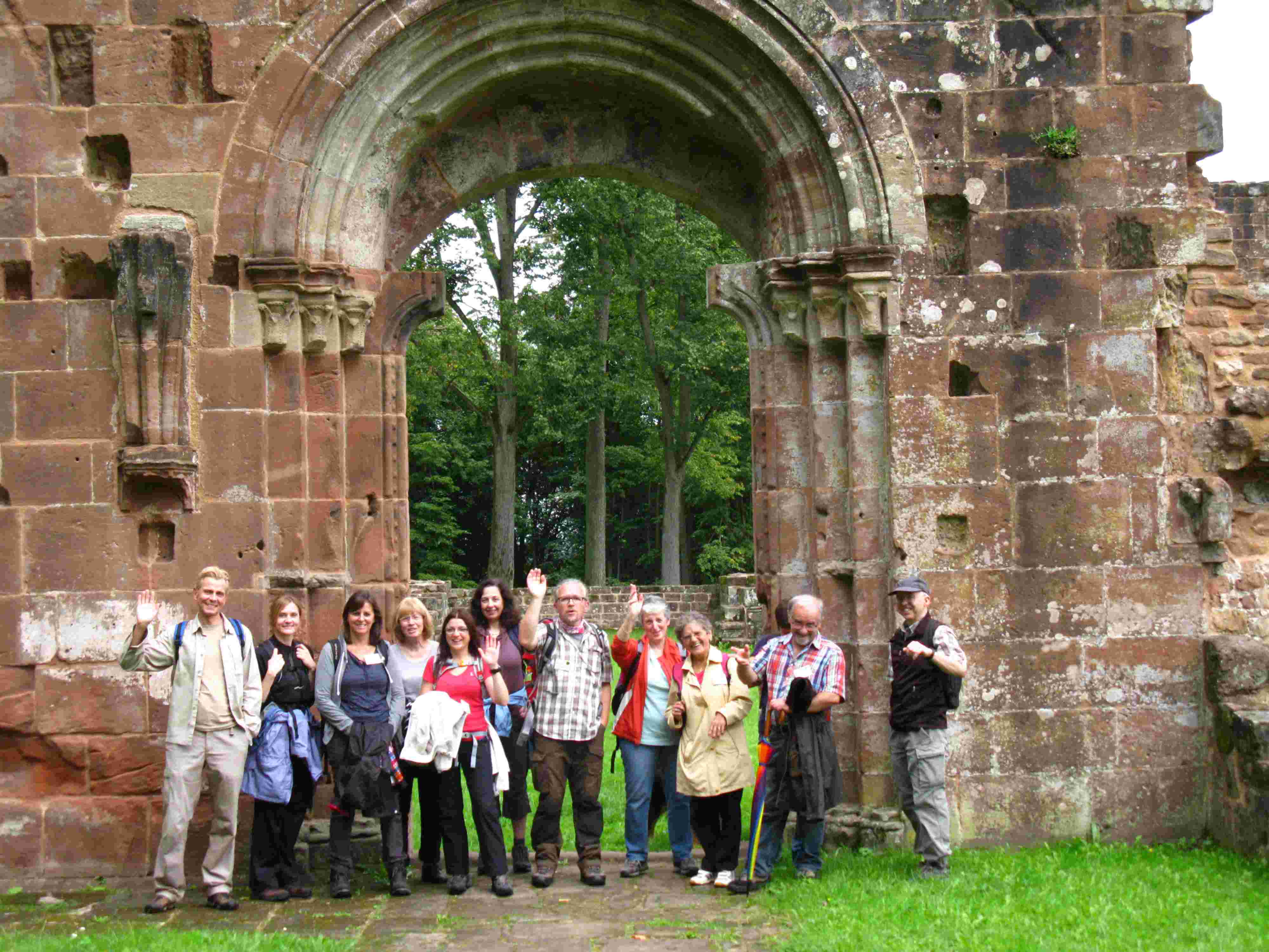 Unter dem Motto “Von Schmugglern, Klosterbrüdern und Wasserbüffeln” wanderten (wie immer in alphabetischer Reihenfolge) Eva, Gabi, Karin, Katja, Kerstin, Klaus, Marliese, Monika, Robert, Rosemarie, Sabine, Thomas, Ulrike und Wanderführer Martin von Beeden über Schwarzenacker zur Klosterruine Wörschweiler. Entgegen jeglicher Wetterprognose wurden wir die ersten zwei Drittel der Tour vom Regen verschont. Das holte der Wettergott aber beim Abstieg ins Bliestal mehr als kräftig nach. Der guten Stimmung tat der Regen aber keinen Abbruch und beim Erreichen der Bliesaue gab der Wettergott resigniert auf. Die letzten Kilometer konnten wir wieder im Trockenen wandern und die vielen Tiere im Biotop Beeden bestaunen. Am Ende gab es Kaffee, Kuchen und……. Wasserbüffelsalami. Vielen Dank euch allen und einen besonderen Dank an Sabine für die Photos. Bis zur nächsten Tour. Euer Wanderführer Martin